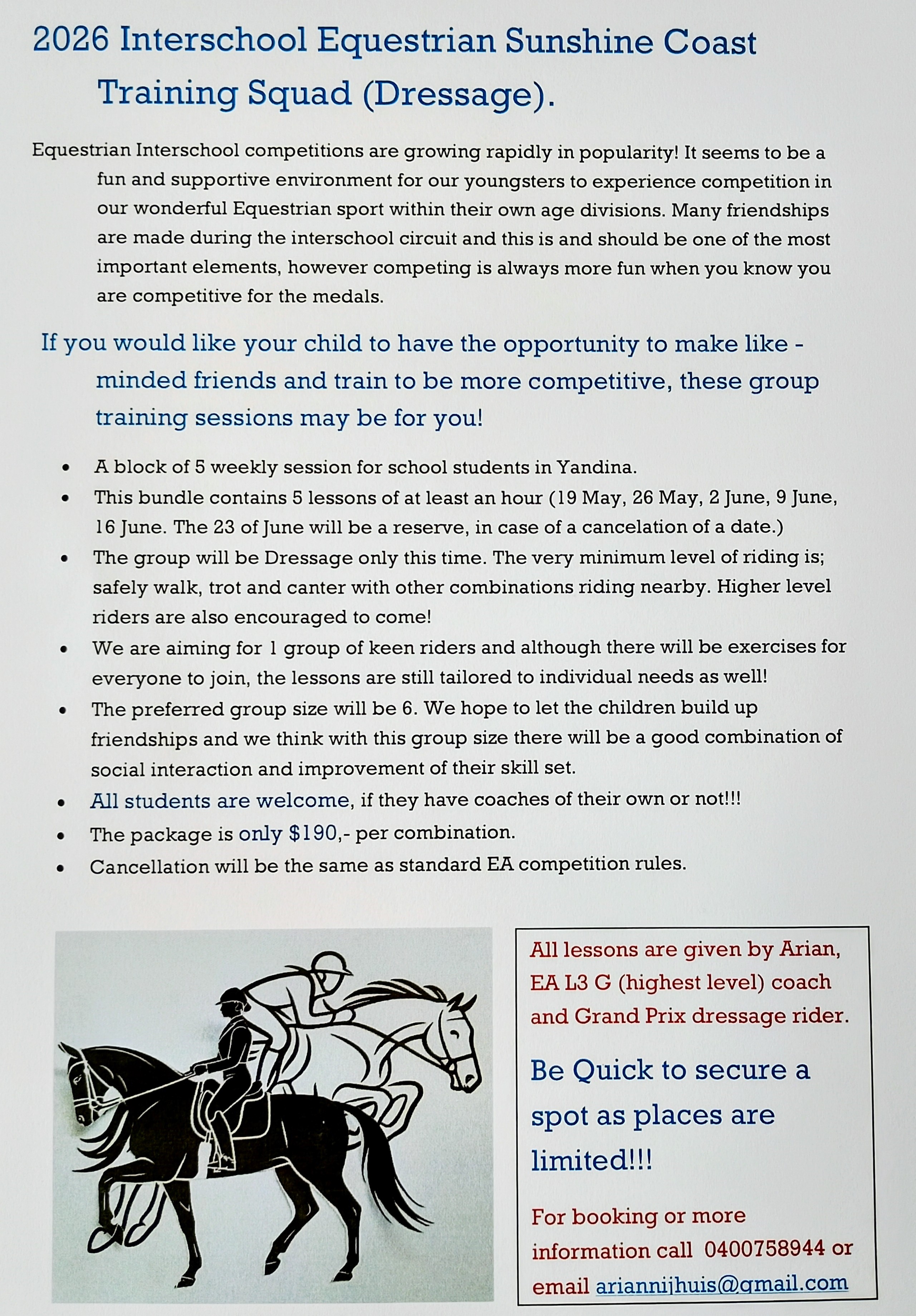 2026 Interschool Equestrian Sunshine Coast Training Squad