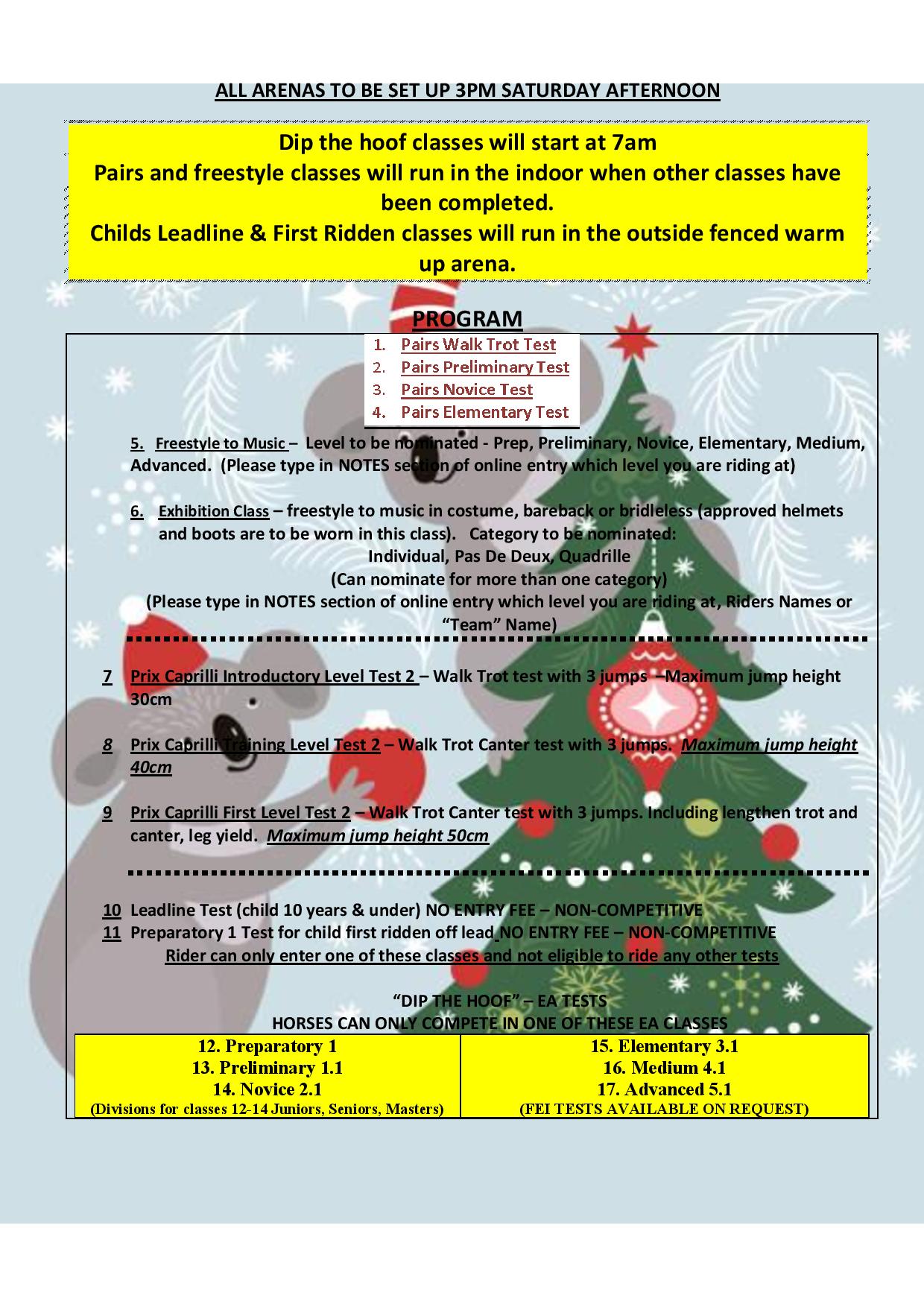 Class: expand_morePrep 1 First Ridden Off Lead 11 Number:11Prep 1 First Ridden Off Lead Status: Open Notes: Test: 2023 EA Prep Test 1 Fee: $0.00