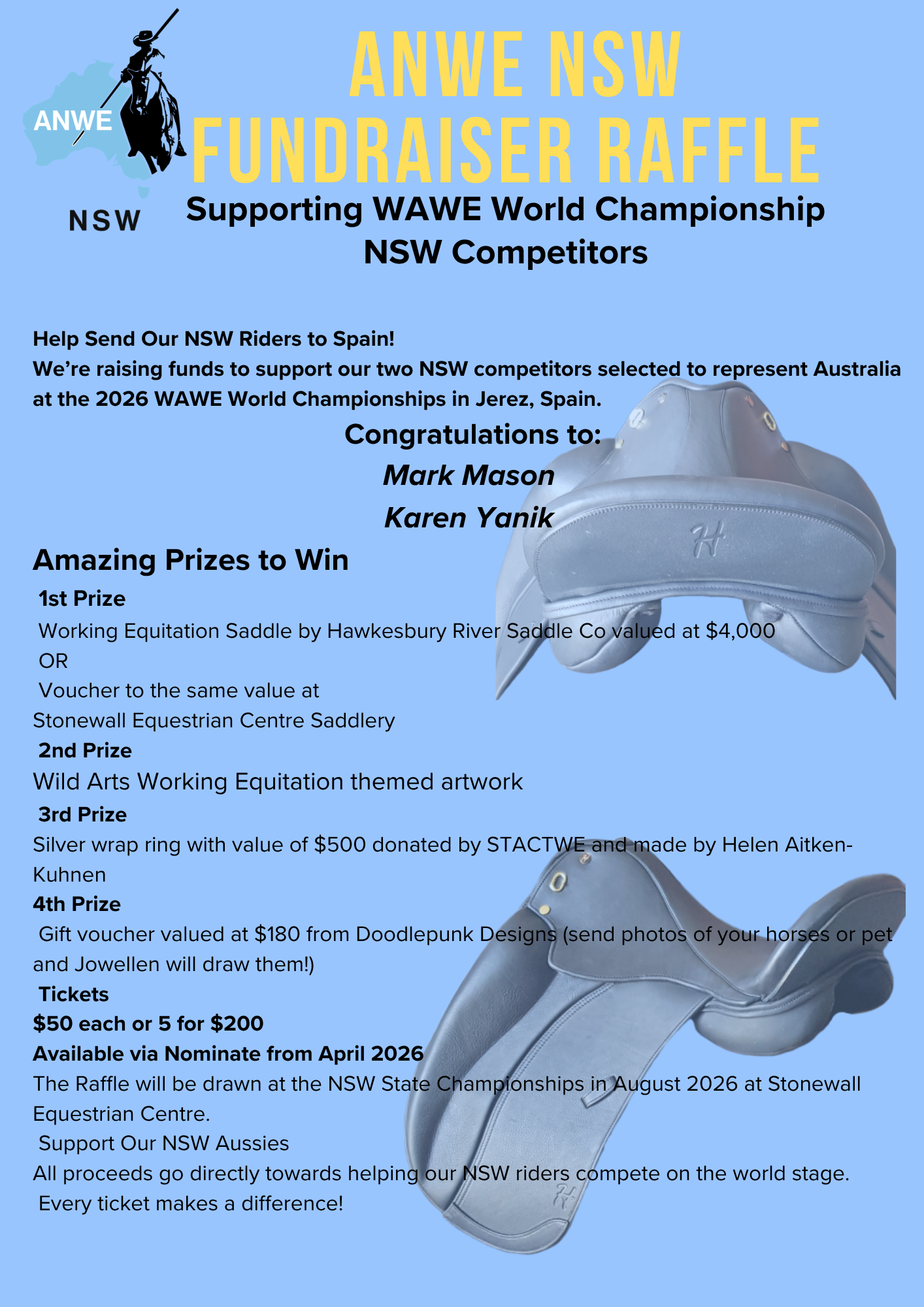 ANWE NSW Raffle Fundraiser for NSW WAWE World Championships Riders