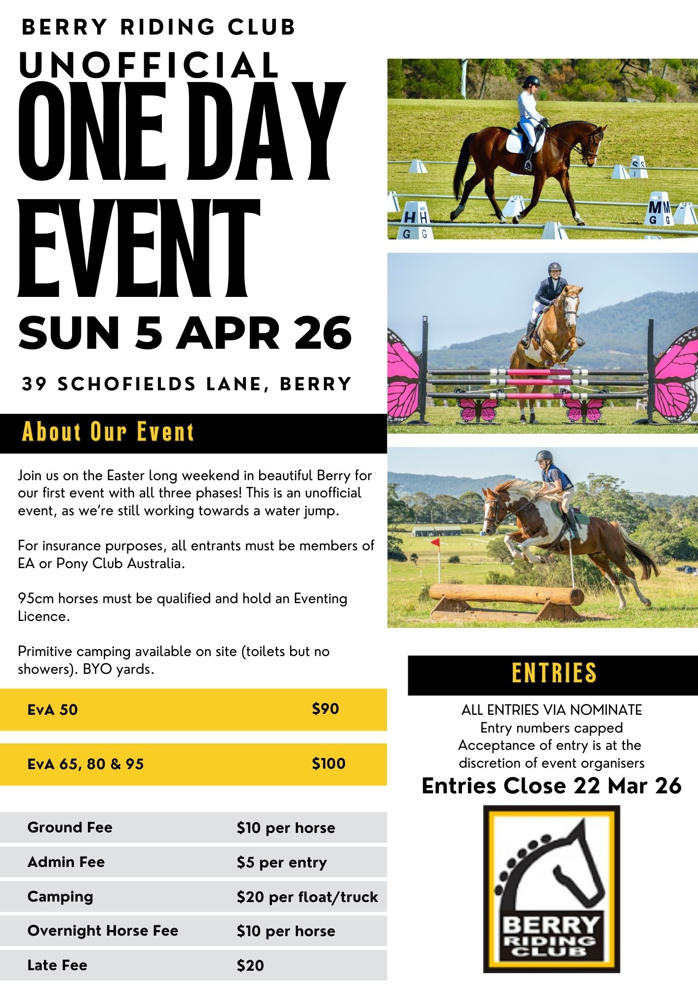 Berry Riding Club Unofficial One Day Event - Sunday 5 April 2026