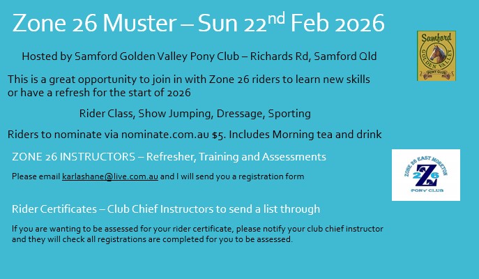 Saturday 22nd February 2026 Zone 26 Muster