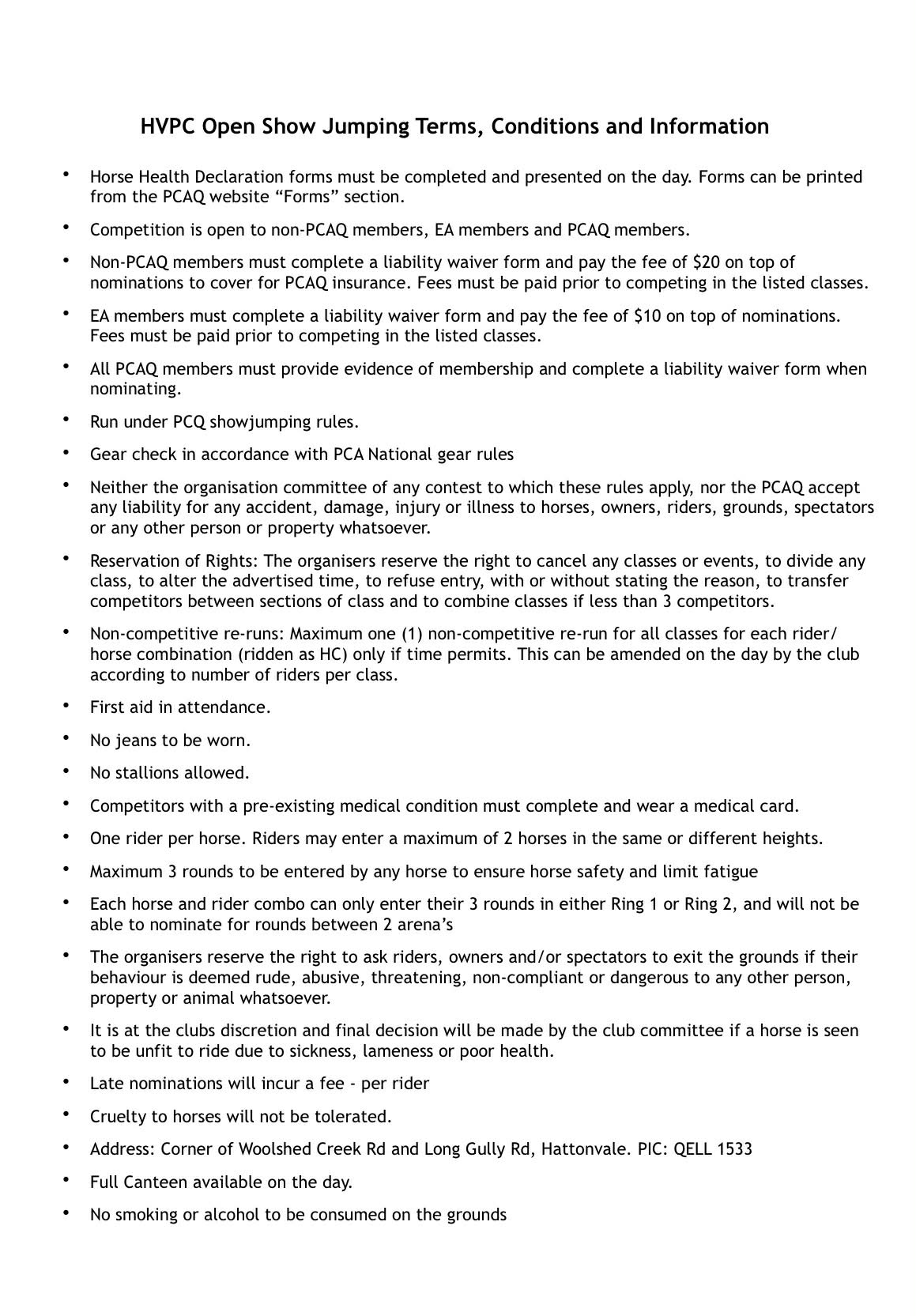 ONLY 1 ENTRY PER CLASS - PER RIDER/HORSE COMBINATION. NOMINATIONS TO BE EITHER RING 1 OR RING 2