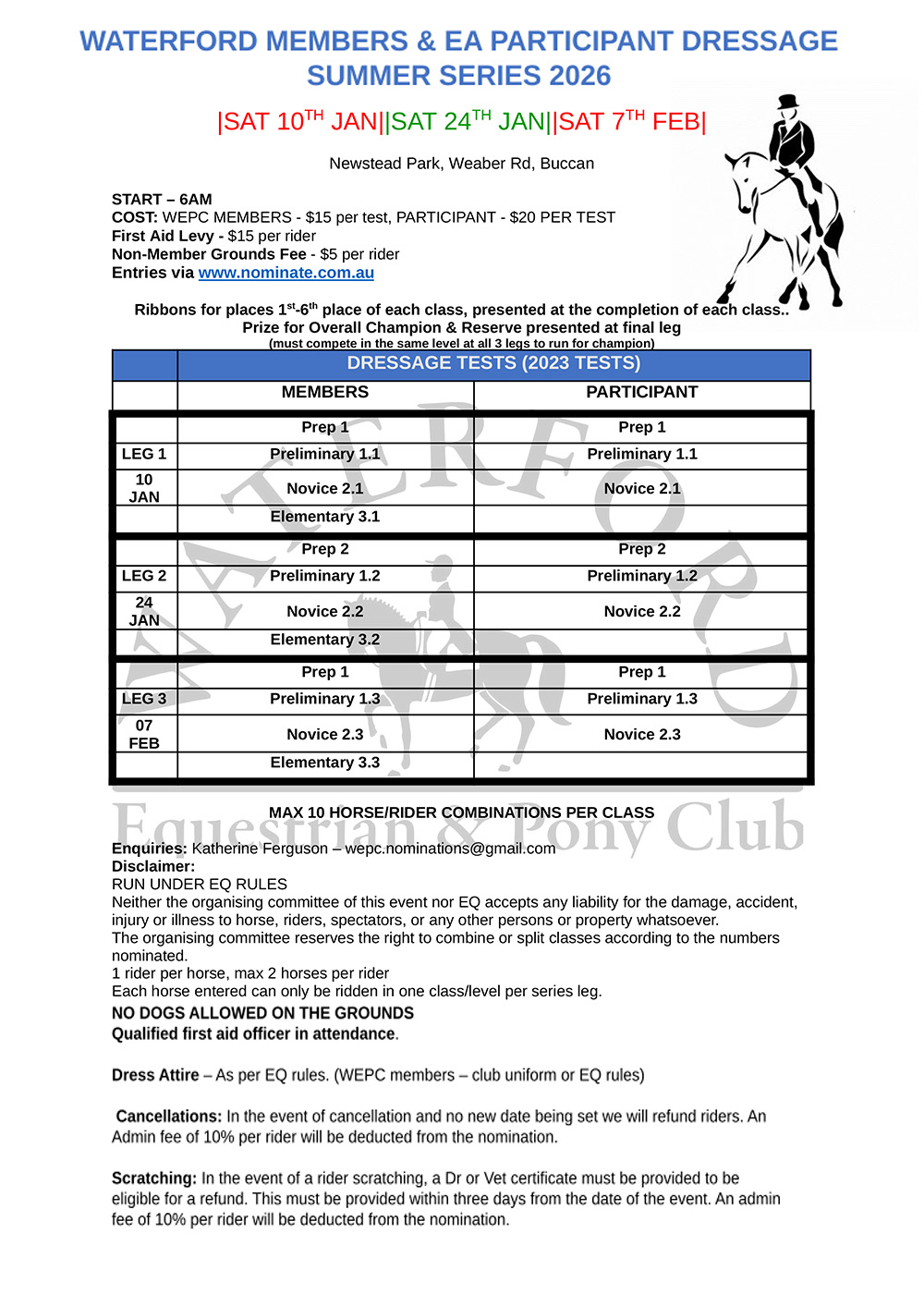 WEPC Dressage Summer Series - Members & EA Participant Leg 1
