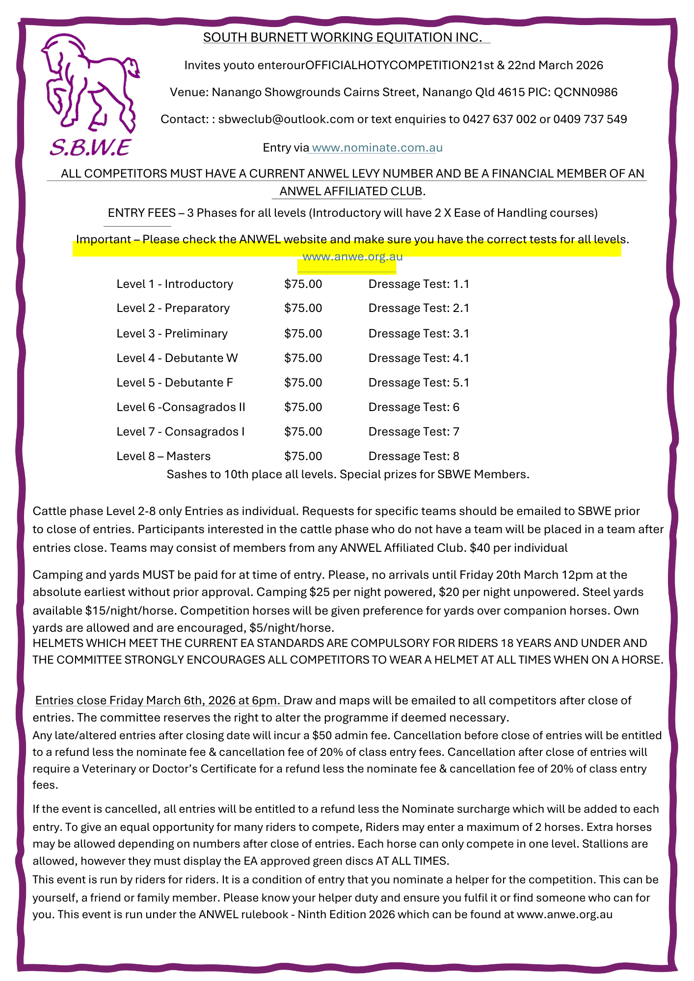 SBWE OFFICIAL HOTY COMPETITION 21st & 22nd March 2026