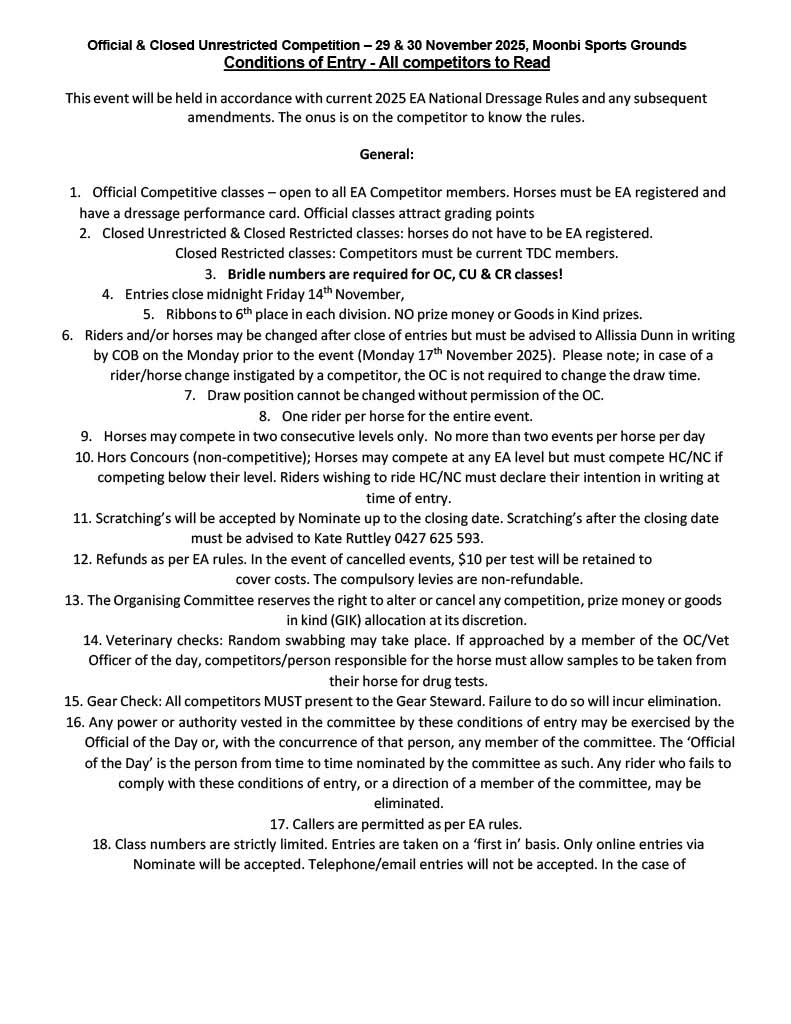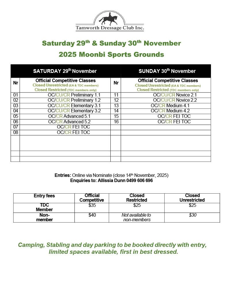 Sat 29 - Closed Unrestricted classes (open to EA & TDC members)