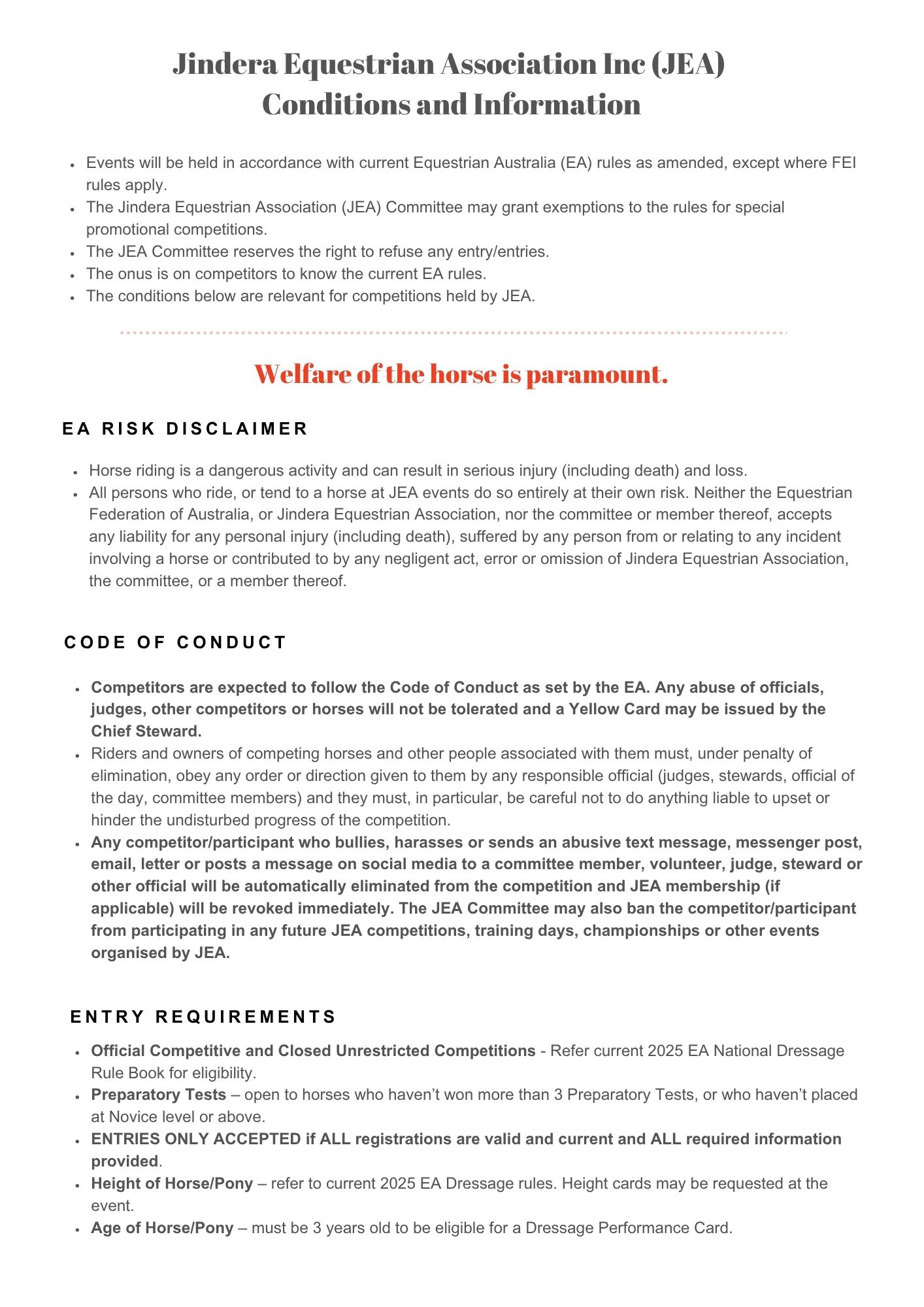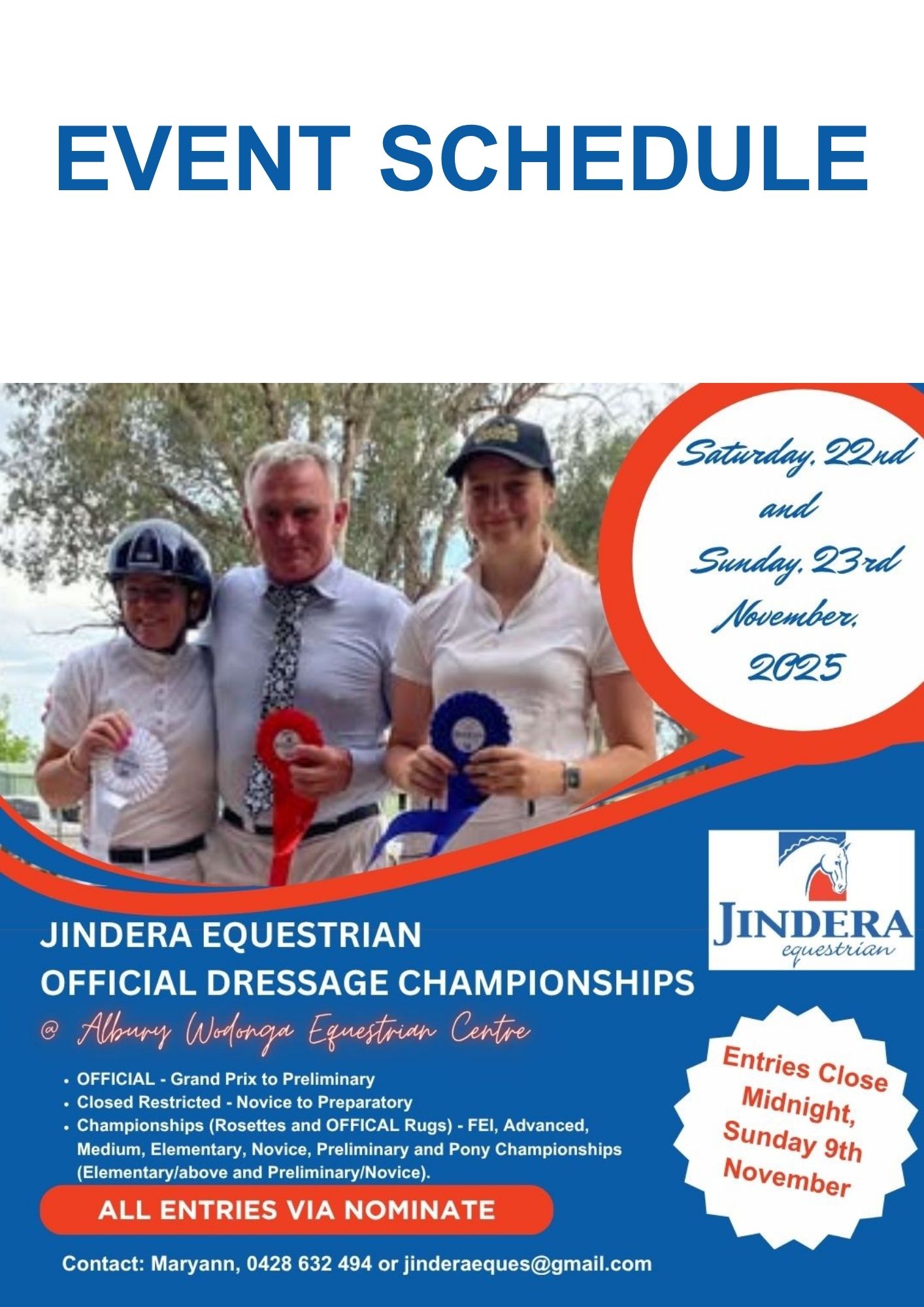 Jindera Equestrian Association Dressage Championships 2025 22/23 November