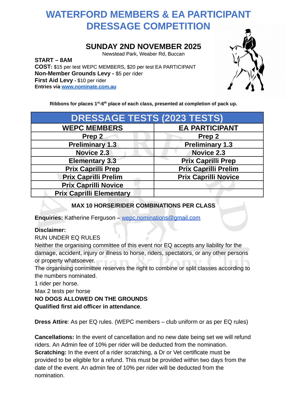 WEPC DRESSAGE DAY - Members & EQ Participant