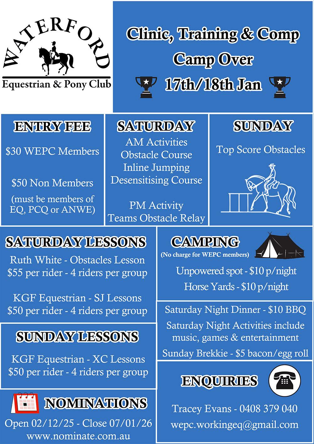 TRAINING & COMPETITION CAMP OVER - SAT & SUN
