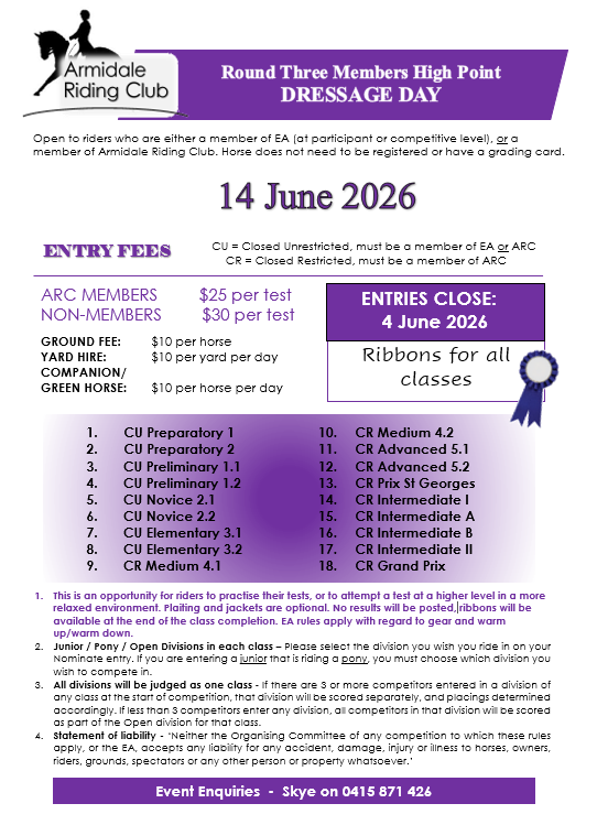 ARC June 2026 Dressage & Round 3 Member High Point