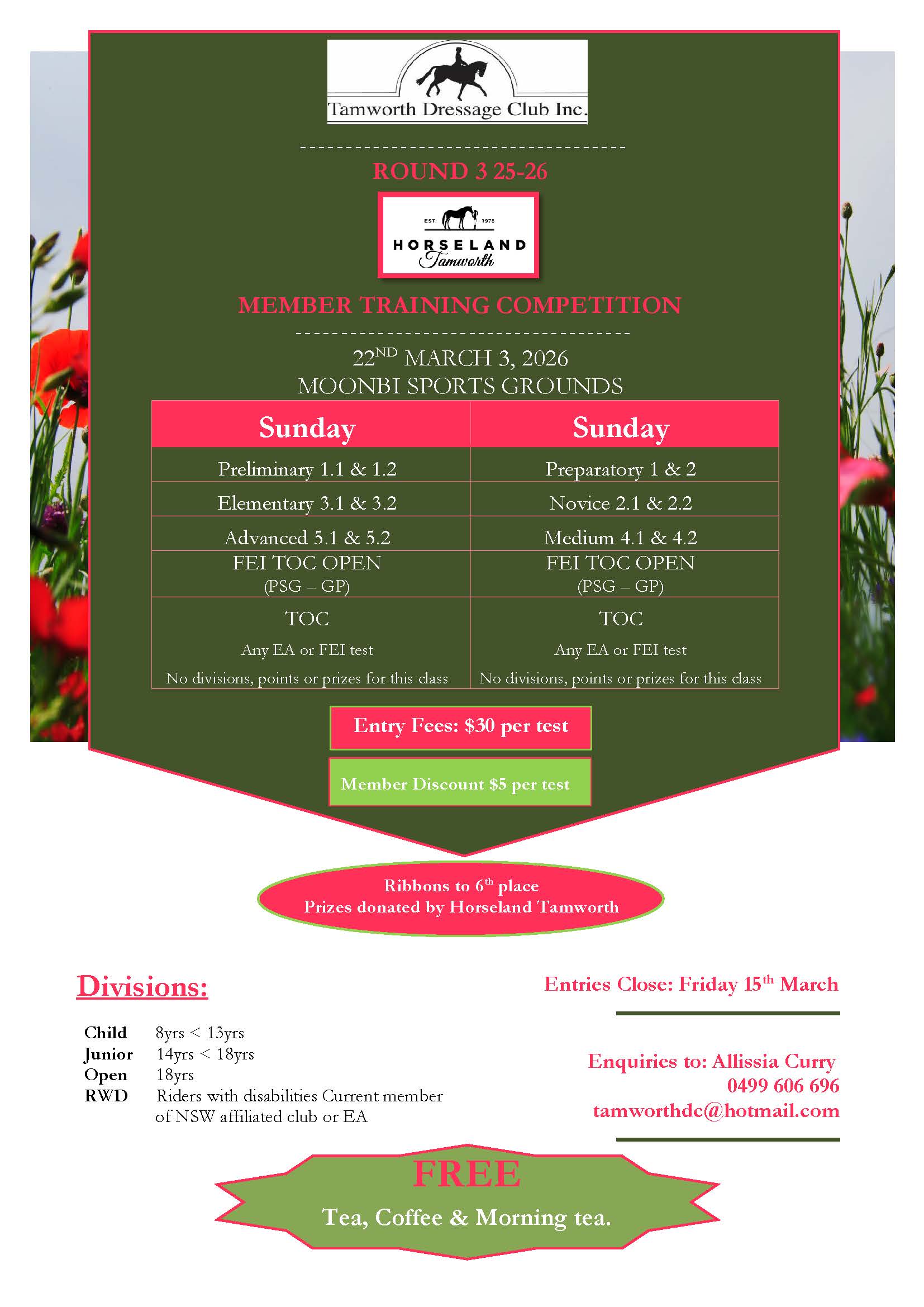 Stables & power will be available from 4pm the day prior to competition.