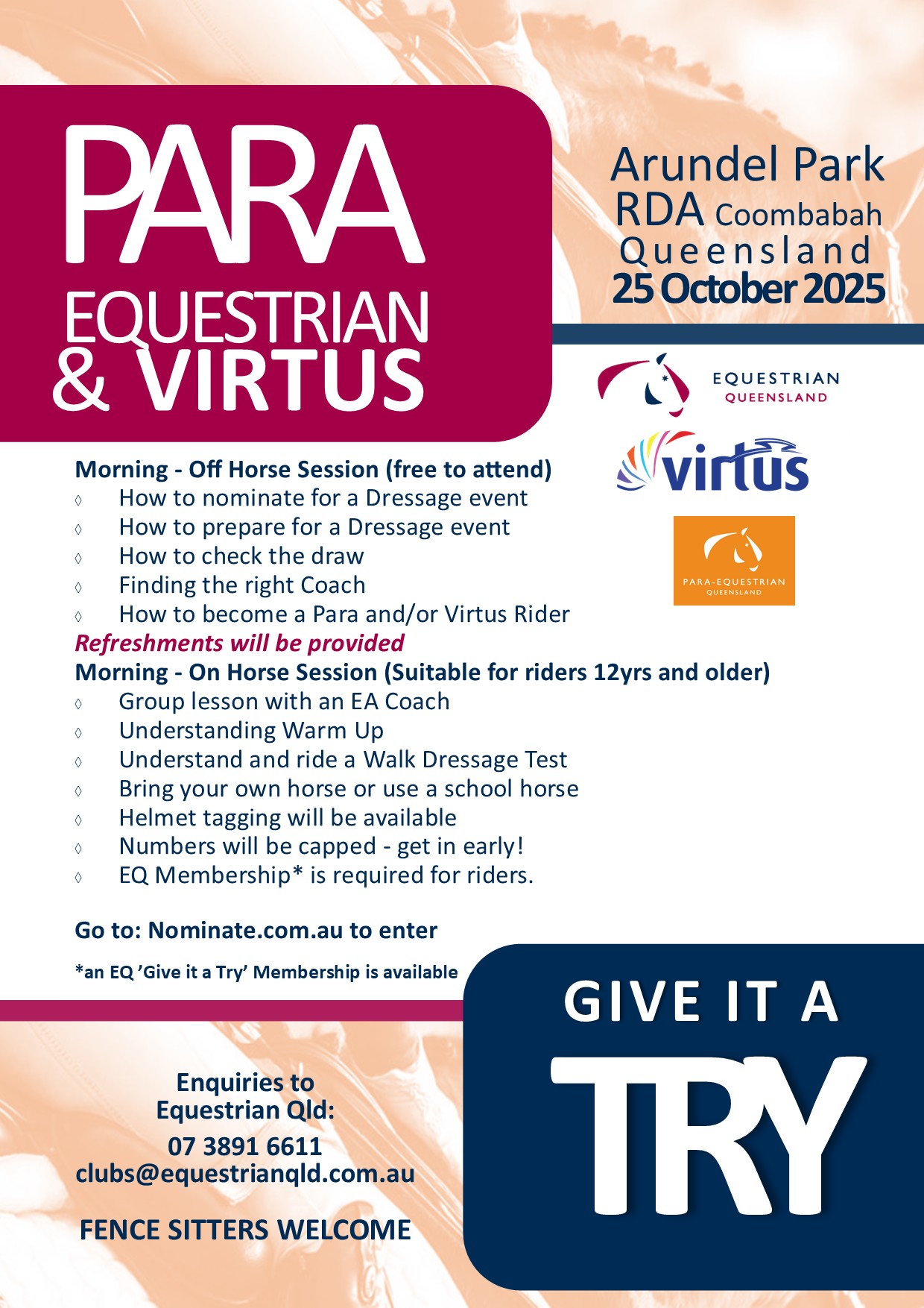 ENTRY LEVEL | EQ Para & Virtus 'Give It A Try' Learn About Dressage Day