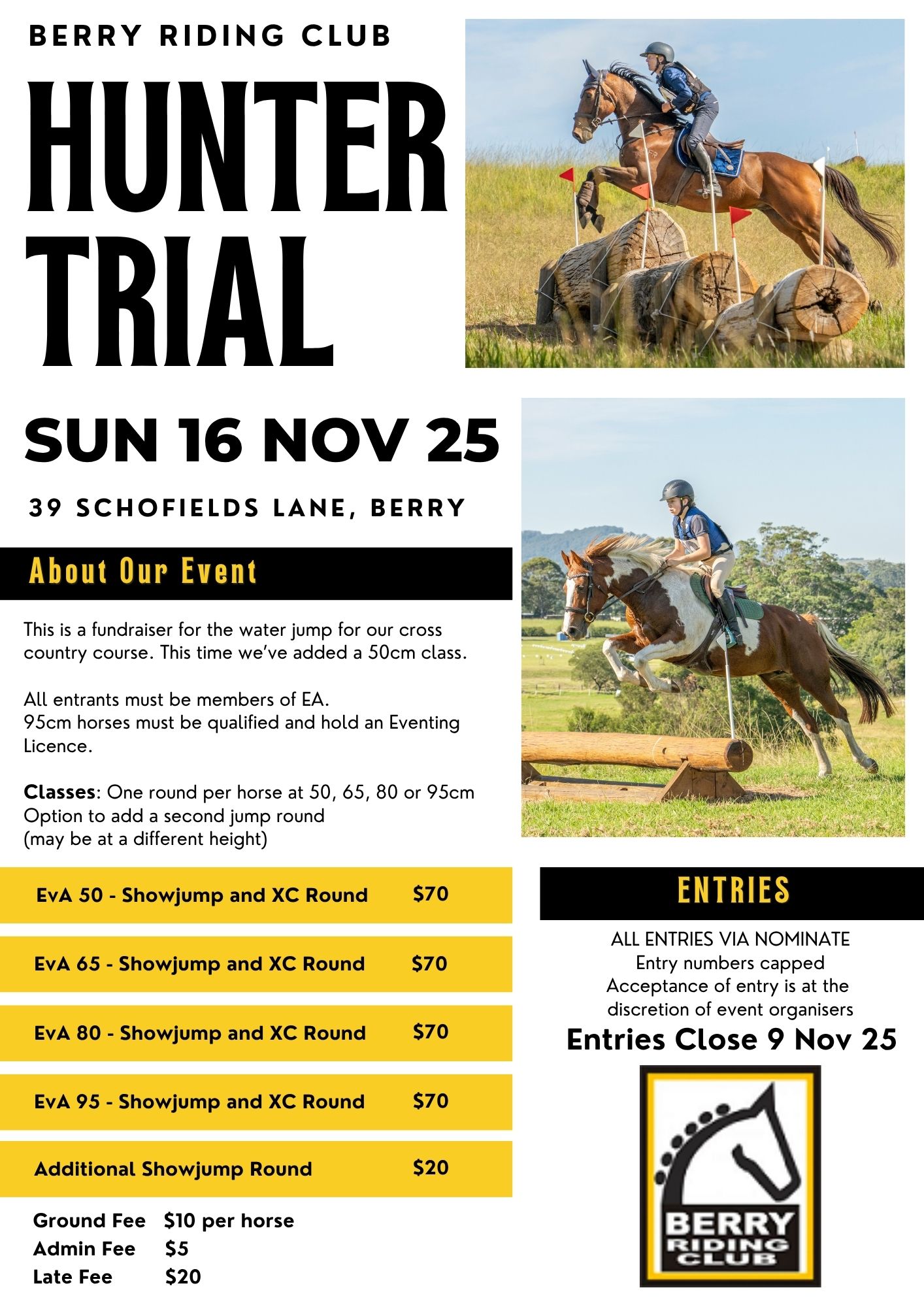 > It is the individual's responsibility to ensure that the horse and rider are fit for this competition. Club Officials have the right to stop a rider or horse participation on safety or welfare grounds. In such case the Club Official's decision is final and refunds will not be given.