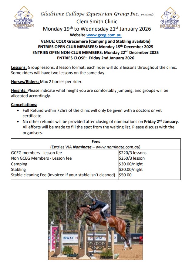 Gladstone Calliope Equestrian Group Presents Clem Smith Clinic