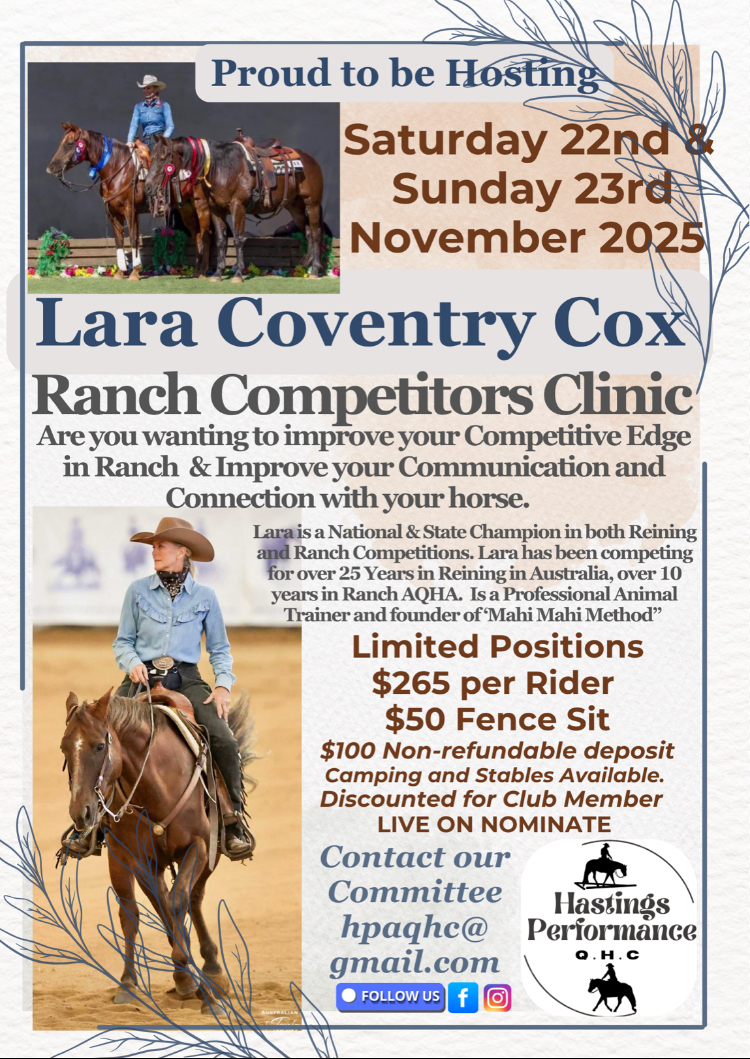 Our Club will be holding this wonderful clinic with Coach & Clinician Lara. This is for ALL FINANCIAL CLUB MEMBERS. Starting on Saturday morning by 9am and concluding Sunday afternoon. Poster Attached for further Clinic detials.