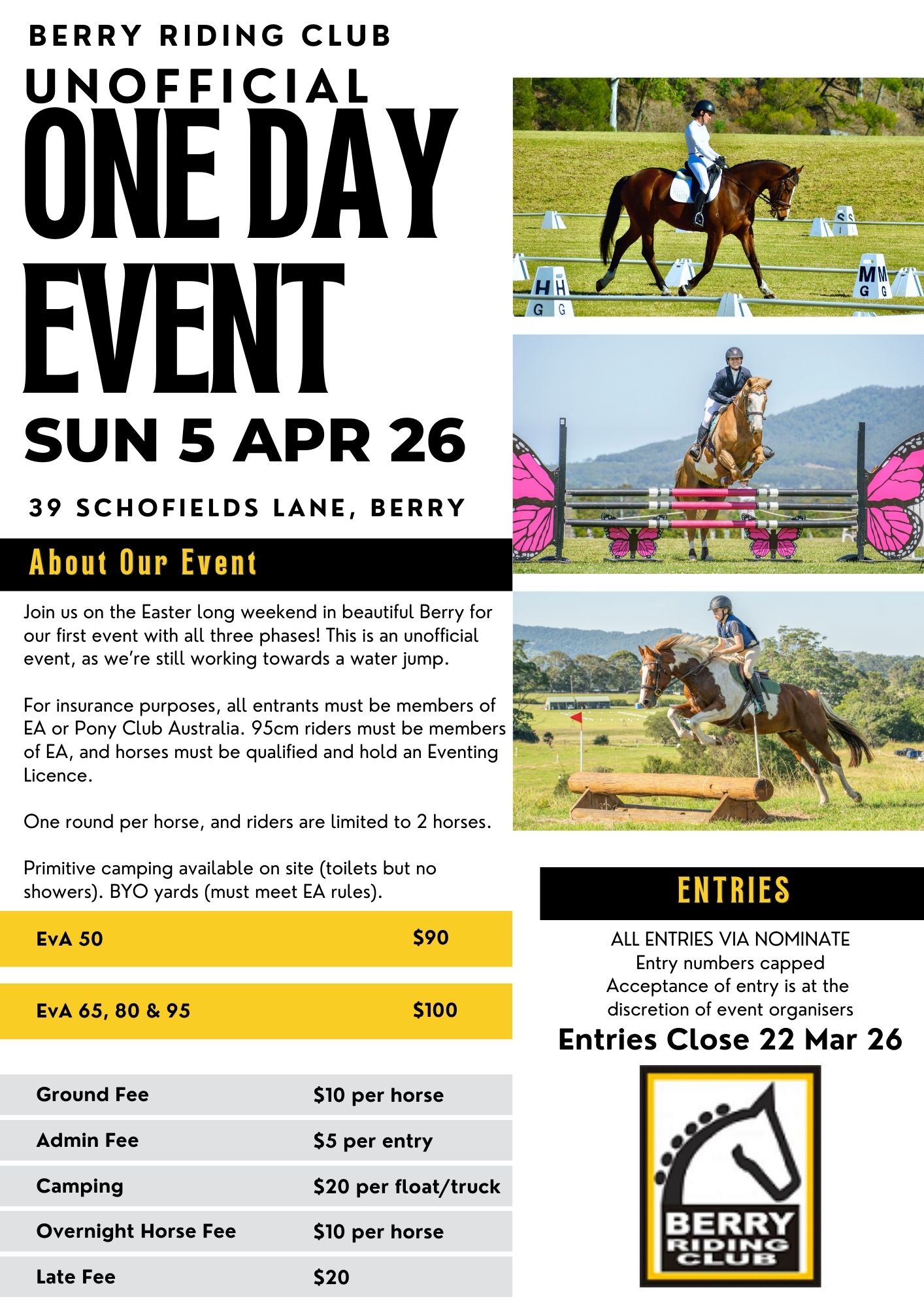 Berry Riding Club Unofficial One Day Event - Sunday 5 April 2026