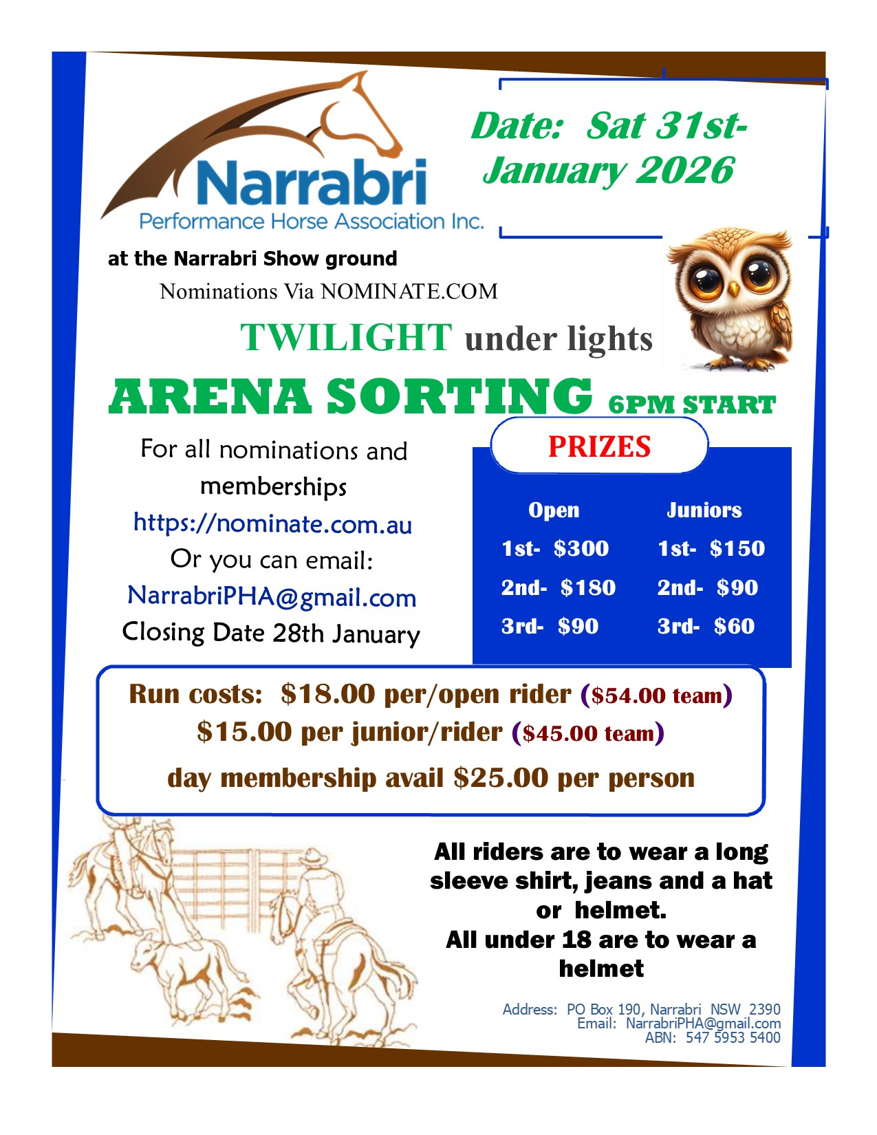 Narrabri Performance Horse Assc Twilight Arena Sorting 31/01