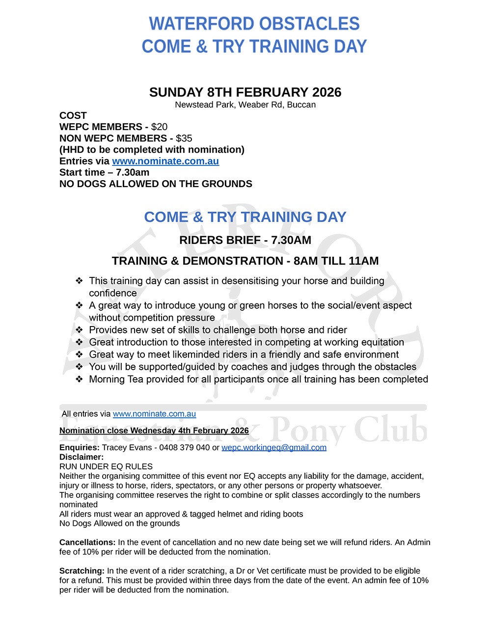 WEPC Obstacles Come & Try Training Day 8th Feb 2026