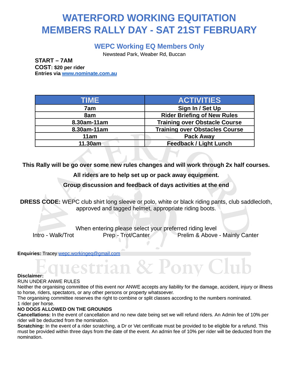 WEPC Working Equitation Members Only Rally Day 21st February