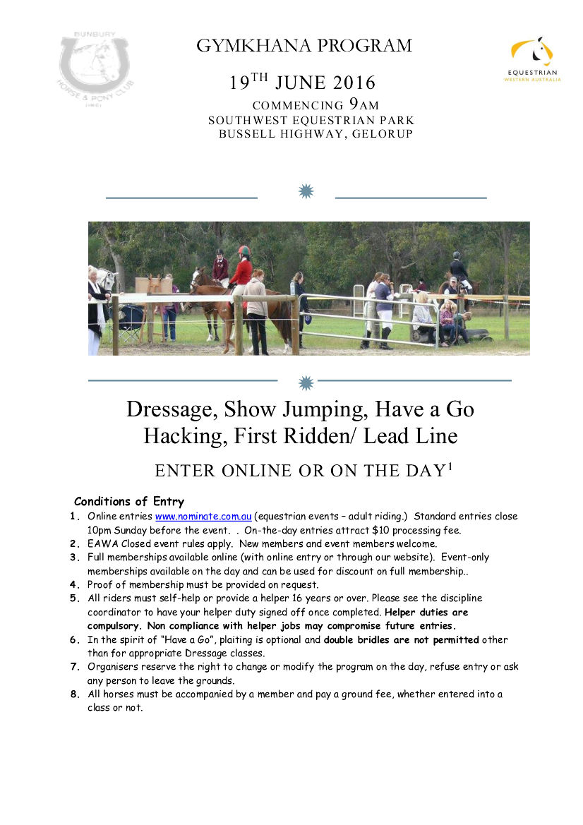 If you log in to your Rider Profile you can setup and select your favourite horses, view your entry history and much, much more.