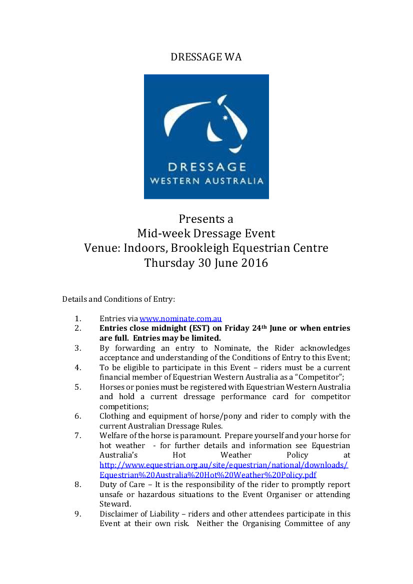 Dressage Tasmania Southern Zone 7 June 2026 Competition