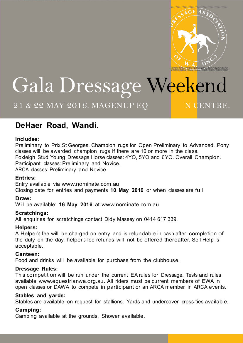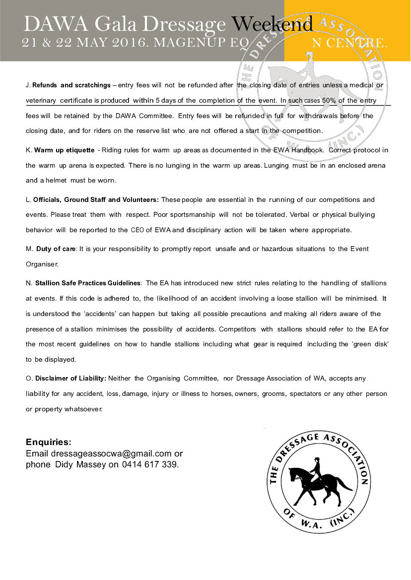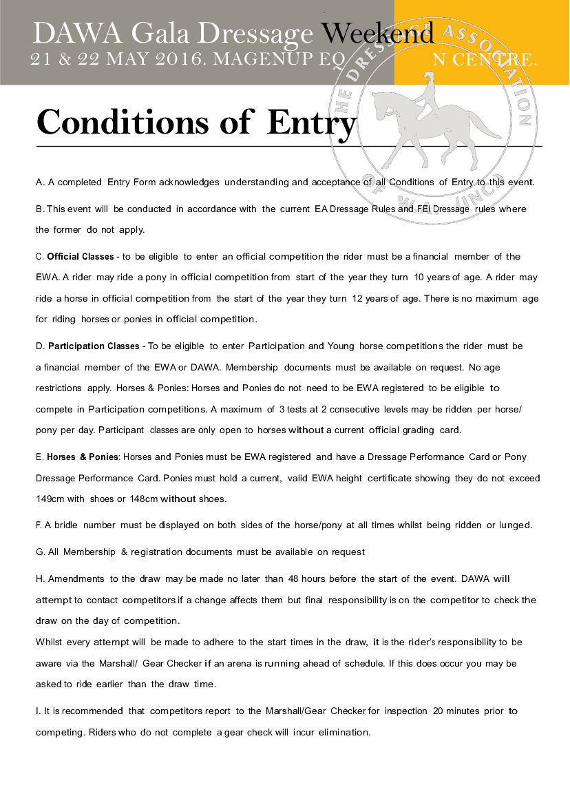 Riders must be members of Equestrian WA or the organising club. Contact dressageassocwa@gmail.com for club memberships.