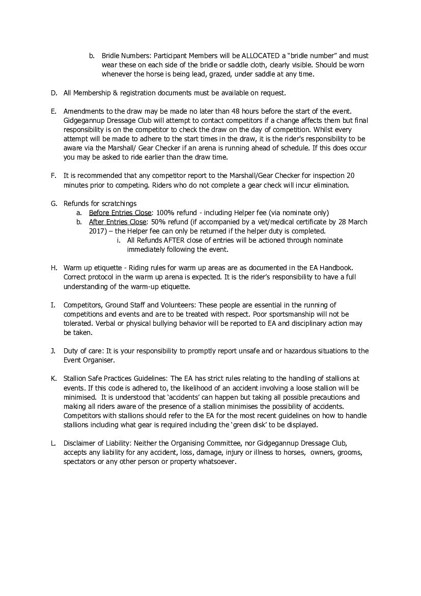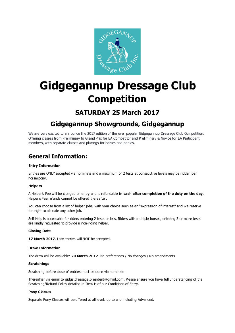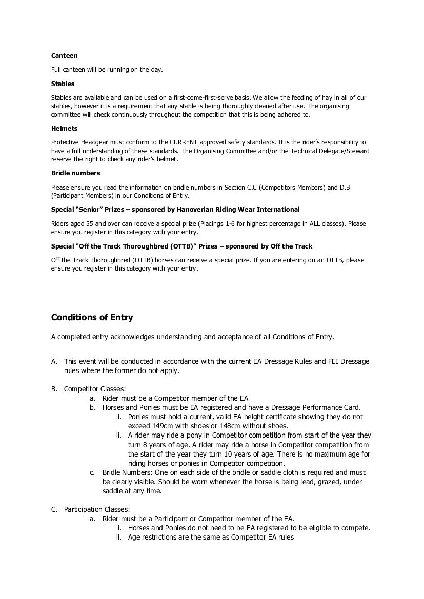 PRARG Participation (EA competitive/participant) & Club Dressage (PRARG Members only) - 31/05/2026
