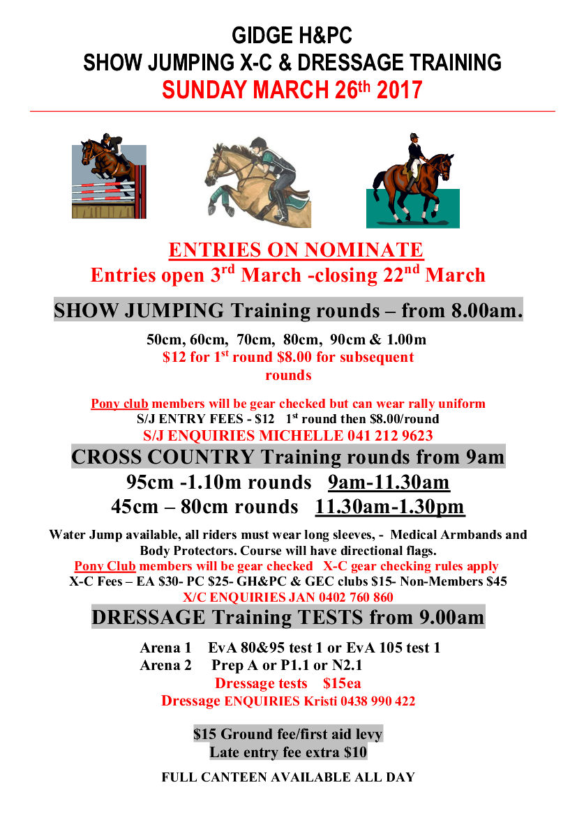 > GIDGE H&PC SJ, X-C & DRESSAGE TRAINING DAY