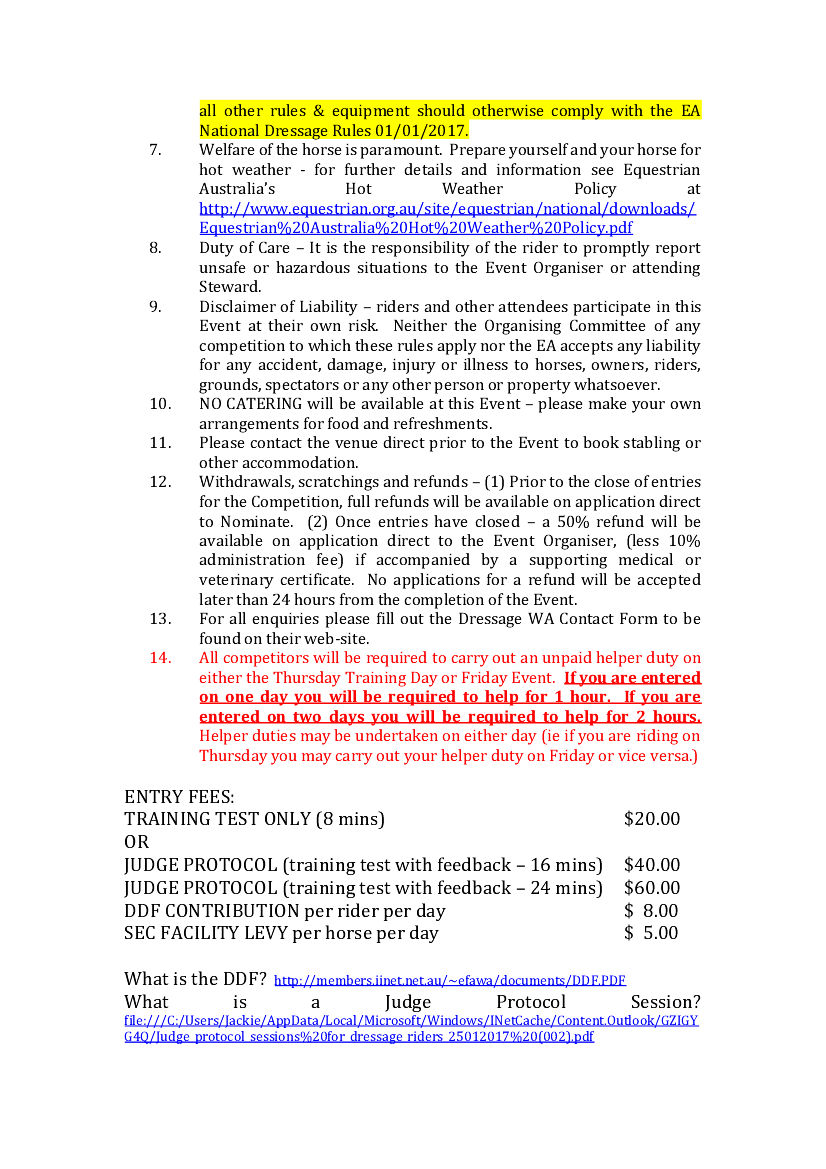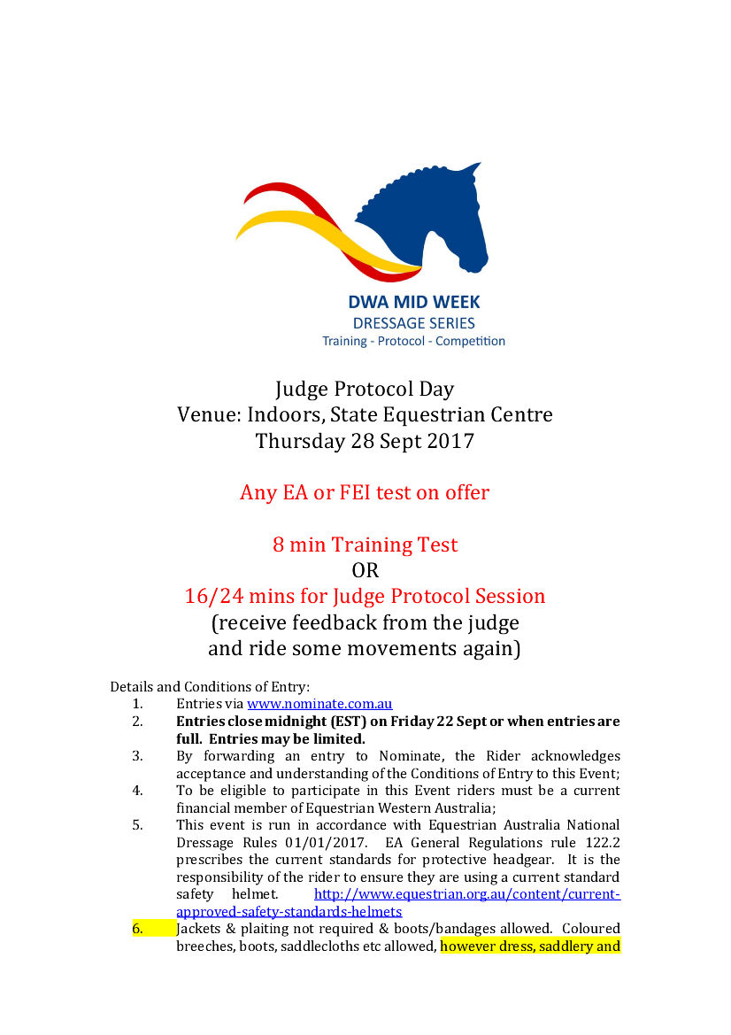 > Dressage WA Mid-Week Dressage Training & Judge Protocol Day